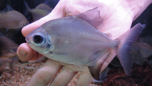 タパジョス産激レアパクー入荷!!ラバーアスーのインボイスで輸入されるパクーはどうやら何タイプか混じっているようなんですが、今回来たの何か良いですよ!たぶん過去に当店へ入荷した個体たちとは別のタイプですね。口先がやや尖り気味で体色は青味が強いシルバーです。現状赤シミなどは見られませんが、まだ小さいしこれから出てくるのかな?背ビレは高いので、静かな環境で飼い込めば間違いなくトップフィンになりますね。ちょっと変わった面白い個体なので、すでにラバーアスーを飼ってらっしゃるというマニアの方にもオススメの1匹です!左上の画像です。