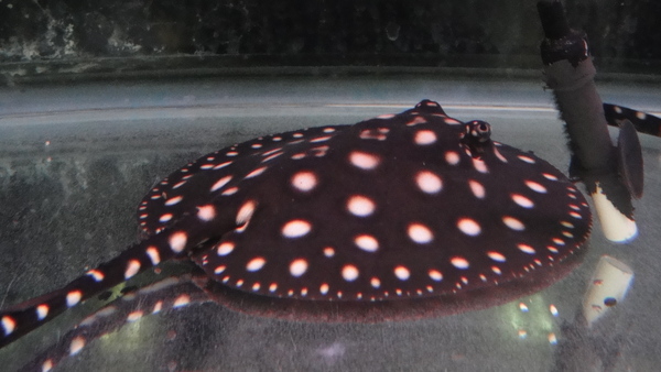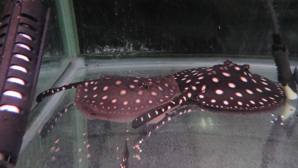 状態抜群!人工飼料をバクバク食べてる絶好調のダイヤポルカが入荷しました!国産で餌も人工飼料OKですからすごく飼い易いですよ!初めて淡水エイを飼育するという方にも自信を持ってオススメできます!今回入荷した個体の中でも大きめの個体はすでに黒の色も濃くなってきてスポットもはっきりしてきてます!小さめの個体もこれからスポットがどんどん増えてきてキレイになっていきますので成長につれての変化が楽しみですね!親個体はオスもメスもとってもキレイなので、今回入荷したベビーたちも将来はかなりキレイな個体になってくれるはずです!!