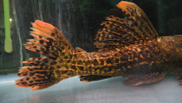 デカい!タイタニックの30超えは激レアです!こんなサイズ滅多に輸入されませんよ!しかも来たばかりで尾ビレが少し短くなっている状態で30超えてますから、尾ビレが完全に再生したらあと1~2cmは伸びると思います!もちろんデカいだけじゃないですよ!体色も素晴らしいです!地の色はオレンジがかった赤銅色で金色の班もびっしり出ています!あと、この個体は胸ビレが長くてシルエットがすごくカッコいいっていうのもポイントです!とにかく後は画像で確認して下さい!プレコマニアは必見です!現状でこれだけの個体ですから、あと1か月も飼い込んであげれば色も揚がるでしょうし、ヒレのバラけなんかも治って見違えるようにキレイになるはずです!このサイズ、このクオリティで10万切ってるのは超激安ですよ!こんなデカいのもう来ないかもしれませんからね、マニアの方はお見逃しなく!!
