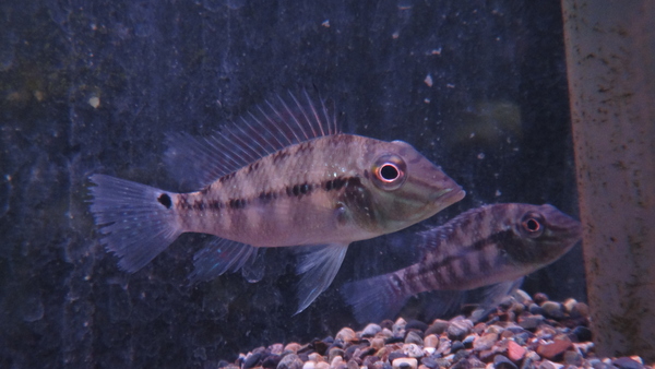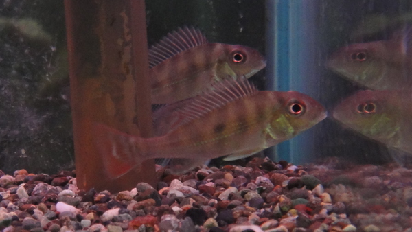 ドワーフパイクと呼ばれる大きくならないパイクシクリッドの1種です。性格も大型のパイクシクリッドよりも大人しく、比較的混泳もさせやすいです!中段右の画像です。画像の個体はメスです。