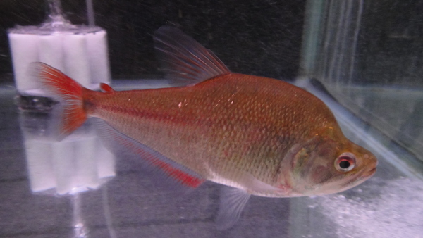 すごいの来ちゃいました!!これはヤバいです!超デカい!!牙カラシンマニアの方は必見です!!体高もすごいし、体の幅もすごいです!!デカいだけじゃなくて、さらに名前の通りでヒレは真っ赤!こんな存在感のあるカラックスはそうはいませんよ!!ただし、残念なことに片方の腹ビレが元からキレイにありません・・・。元からキレイに無いのでそんなに気にならないとは思いますけど。それにこいつを、実物を直接見てもらえれば片方の腹ビレがないなんてどうってことないと思ってもらえると思います!!もはやそんなこと関係ないと思えるくらいにすごい魚です!今回16cmと14cmの個体が1匹ずつ入荷しましたが、その2匹しか輸入されていません。なので腹ビレがないと文句を言ったところで同じ魚は他にいませんからね!それよりも無事に入荷してくれただけでありがたいです!もちろん次回の入荷は未定です!早い者勝ちですよ!入荷直後に撮影したため画像では色とびしています。実物はもっとキレイですよ!上段と中段左の画像です。3つの画像は同一個体です。
