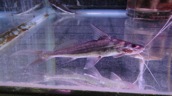 激レアデンキナマズ入荷です!やっと来ました!!1年位前に小さいのが1匹だけ入荷しましたが、それっきりだったのでずっと待ってたんです!!パラドクソグラニスという属のデンキナマズで、普通のデンキナマズとは属レベルで違う魚なんです!小さいサイズではドジョウのように体が長く、普通のデンキナマズとは一目でその違いが分かります!パラドクソグラニス属は3種類記載されていますが、今回入荷したのはParadoxoglanis parvusと思われます。というのも3種類のうちの2種類は最大でも12cm位らしく、唯一パルヴス種だけは最大で17~18cm位になるみたいなんです。今回来た個体が16~17cmあるので、たぶんパルヴス種の成魚サイズなんだと思います。とは言っても、データの少ないナマズなので、どこまで信用できる情報かはわかりませんが・・・。とりあえず入荷は少数のみですので、こういうの好きなド変態マニアの方はお見逃しなく!!左上の画像です。