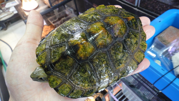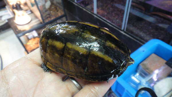 もう1匹来てますが、こっちは残念なことにほんの少しだけ尾切れです。それ以外に欠点はなく、甲羅も黄色がキレイな美個体です!尾切れにつき超激安です!早い者勝ち!!下段の画像です。2つの画像は同一個体です。