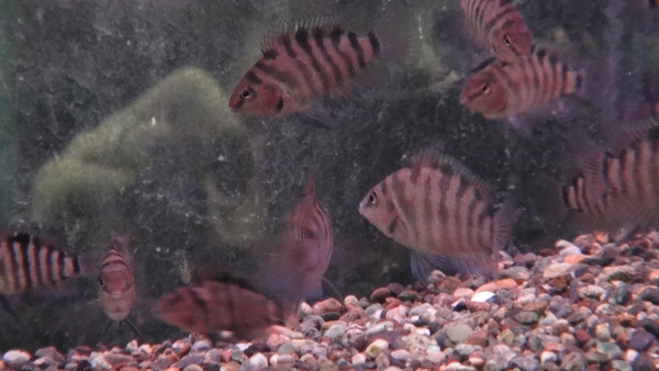 常連のお客さんのところで殖えた個体を分けてもらいました。なので大特価です!ころころした丸っこい体型がかわいいシクリッドです!左下の画像です。