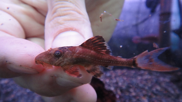 レッドパナクェの名前で入荷しましたが、実際はコクリオドン系のプレコでロイヤルプレコの仲間ではありません。名前の通り赤味の強い体色でとってもキレイです!コケ掃除にも役立ちますよ!