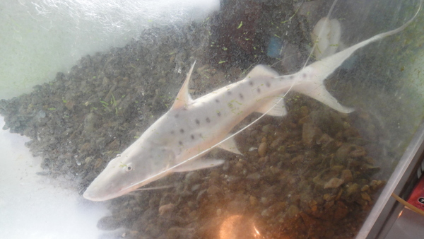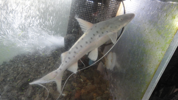 やっぱりピライーバは最高ですね!サメみたいで超かっこいいです!!ただ今1800の水槽で単独飼育中なので口先もぶつけたりとかしていません!キレイな完品ですよ!こいつの為に1800の水槽を空けて育てていたので別に売るつもりもなかったのですが、これ以上大きくなると水槽から出すのも難しくなり、状態良く移動する上でのリスクも大きくなりますので、とりあえずこの辺で1回ホームページに載せてみようかなと思いアップしてみました。まぁ売れなかったら看板魚として引き続き育てます。少し前に入荷した小さい個体もまだいますので、もしこいつが売れてもまた育てればいいかなとも思ったり・・・。それに全部残ってみんな大きくなっても困りますのでね。この魚は50~60cmとかになると移動させるだけで生体にかかる負担がかなり大きくなります。なので現実的に販売ができるのはこの位のサイズまでかなと思いますので、混泳用とかで大きめの個体が欲しかったなんていう方がもしいましたら、この機会をお見逃しなく!人工飼料にも餌付いていますので飼い易いと思いますよ!