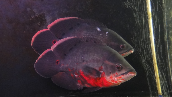 これは価値があります!レッドベリーのペアが奇跡の入荷です!1か月以上前に入荷しましたがちゃんと仲良くしてくれるかしばらく様子を見ていました。多少の小競り合いはあるものの、もう1か月位このペアだけで混泳できています。普通は2匹だけだとどちらかが一方的にやられてボロボロにされてしまうことがほとんどですが、この2匹は大丈夫ですね。コーナーカバーの角や水中ポンプにぶつけたりで多少のスレはありますが、ひどいキズや欠点はありません。サイズや顔付きを見た感じはどちらもまだ若々しい個体ですが、すでに濃い赤がしっかり発色しています!でも極上のレッドベリーはまだまだこんなもんじゃありません!さらに発色してこれからどんどん良くなるはずです!この2匹なら繁殖もかなり高い確率で成功するのではないでしょうか?!ただでさえ入荷の極端に少ないレッドベリーがペアで入荷するなんて奇跡です!今後もまずありえませんよ!マニアの方はお見逃しなく!!ただし、環境が変わっても必ずペアでい続ける保証はありませんのでご了承下さい。6つの画像は全てペアの画像です。