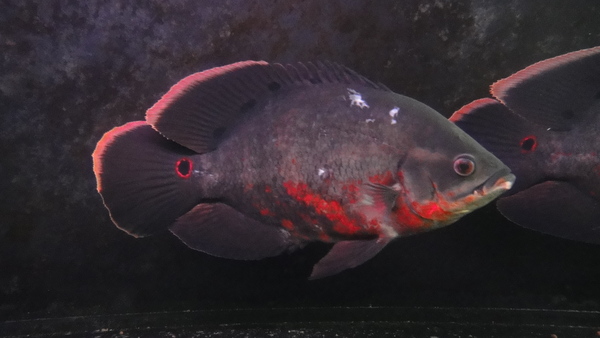 レッドベリーもう1匹います!上記のペアと同時に入荷した個体です。最初はペアの2匹と同じ水槽に入れていたんですけど、ペアの2匹が強くてすぐにボコボコにされてしまい別の水槽で個別にストックすることに・・・。単独で管理していますので今ではキズも治ってキレイになっています!こっちもまだ若い個体ですからこれからの成長と発色が楽しみです!すでに腹部や喉の辺りには濃い赤が発色していますので将来は有望ですよ!このサイズのネグロレッドベリーがこの値段は超お買い得ですよ!早い者勝ちです!!
