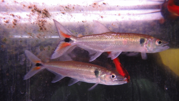 超激レア!!トカンチンス河上流のラジェアード産トーピード入荷です!今回国内に4匹しか輸入されませんでしたので全部仕入れておきました!!なのでこの魚はうちにしかいませんよ!南米牙カラシン、中型カラシンマニアの方は必見!!まだこのサイズなので尾ビレ全体が赤いわけではありませんが、発色部分の色は濃くこれからどんどんキレイになってくれるのは間違いないでしょう!トカンチンス産のこのタイプのトーピードは飼い込むとエラ蓋後方にある濃い緑のスポットが金色のラメ状の発色で縁取られ、かなりキレイになるらしいです!12cm位のが2匹と10cm位のが2匹来てます!次回入荷は未定!お見逃しなく!!上段の画像です。左上が12cm位の個体で、右上が10cm位の個体です。