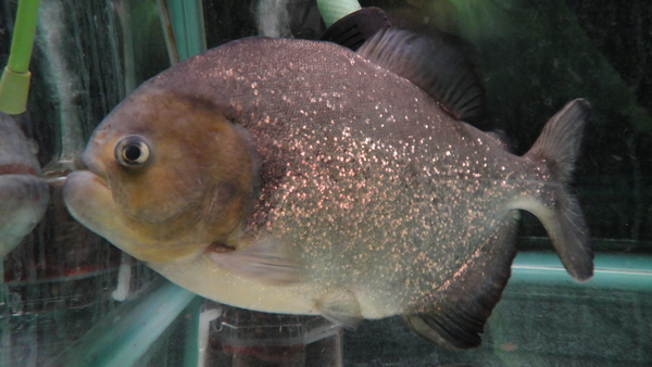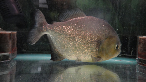 超激レア!!ここ数年はまとまった入荷もなく、ほとんど幻のピラニアと化している超希少種です!しかも今回来た個体、デカいです!!入荷した時は両目が白濁し、体側には所々水カビが付き、泳ぎも頼りない感じでフラフラしていたので、正直状態が立ち上がる可能性は五分五分だと思っていました。でもさすがピラニアですね!生命力超強いです!!今では目もキレイになり、体側の水カビも落ちて、状態ばっちりです!しかもこんなに大きいのにアゴのコブやエラ捲れもない完品です!背中のラインもキレイに丸く、体高もあるのですごい迫力ですよ!!鱗のラメも超ギラギラです!次回の入荷は未定です!ピラニアマニアの方は必見ですよ!もちろん1匹のみですのでお見逃しなく!!