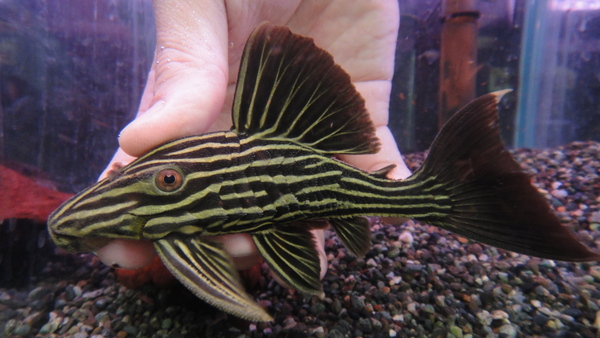 ちょっと塩の入った薄い汽水でストックいています。問屋産でしばらくの間ストックされていたので良く太っていて状態は良好です!この手の汽水ナマズにありがちな痩せや着状態不良などは一切ありません!ちょっとマニアックなナマズですがオススメですよ!