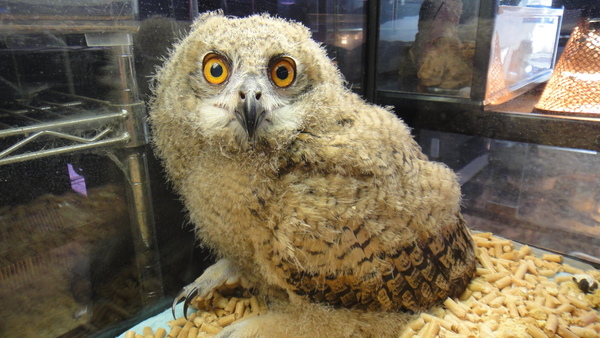 今年の春産まれのベンガルワシミミズクが入荷です!まだ綿毛の残るポヨポヨのかわいいヒナです!もともとフクロウの中でも特に良く馴れる種類ですが、ヒナから飼えば超ベタ慣れ間違い無しです!国内ブリードですから状態も心配ありませんし、餌食いも良好です!まだ綿毛のヒナですが餌はもう朝と夜の1日2回でOKですので昼間はお仕事で家にいないという方でも問題無く飼育できますよ!さすがに1日に3回も4回も餌をあげなくてはならないような小さいヒナでは飼育も大変すぎですからね・・・。大きすぎず、小さすぎず、存在感のあるキレイでかわいいフクロウです。オレンジの目に羽角(耳毛みたいな飾り羽)などうれしいオプション満載で見た目もキレイで性格まで大人しく馴れやすいなんて言うことなしです!訓練次第ではフリーフライトも可能な種類です!こんなの連れて外に散歩に出かけたら人気者間違いなしですね!?