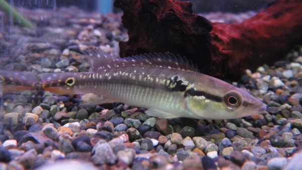 やや体高があり、背中に細かい縞模様がでるタイプのスリースポットアノストムスです。背ビレや尾ビレは赤く発色しています。産地によって若干の違いがあるようで、もっと細身のやつとかがくることもありますね。