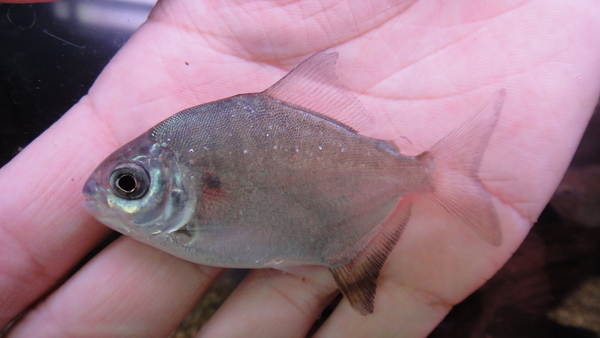 これはいいです!ネグロ水系リオデミニから超激レアなカラシンが入荷です!あまり聞きなれない魚だと思いますが、こいつは滅多に入荷しない珍カラなんです!今回も他の魚に混じって1匹のみ輸入されただけで次回の入荷予定はありません!種の同定はできませんが、ブリコノプス属というのは間違いないと思います。この属の魚は小さい種類で10cm位、大きい種類は16~17cm位になるスレンダーな体型の中型カラシンです。今回来たのはまだ小さいので大きくなったときのイメージがわかないと思います。なのでどんな魚か気になる方はBryconopsで画像検索してみてください!この普通っぽくて、いそうでいない感じがマニアにはたまらなくないですか??