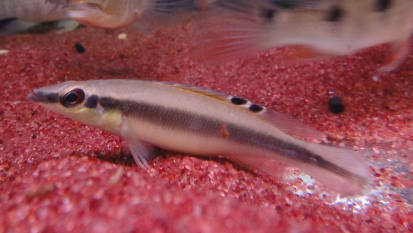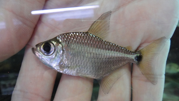 アラグアイア水系上流域の支流、リオクリスタリーノから激レアカラシン入荷です!その名もビックリアイカラシン!ビッグアイアカラシンではなくビックリアイカラシンです!ビッグアイカラシンによく似ていますが全く別の魚で、目の大きさはビッグアイのそれよりもさらに大きいかも!?ビックリアイはビッグアイや他の魚に混じって極稀に少数のみが輸入されにすぎない超激レアカラシンです!今回も3匹だけ輸入されたということでしたので全部ゲットしておきました!ビッグアイやその他の中型カラシンの好きなマニアの方はお見逃しなく!!左上の画像です。