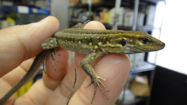 キレイで丈夫なカナヘビでオススメです!まだオスかメスか分かりませんが、体側には緑のスポットがキレイに出ていますのでもしかしたらオスかも??野菜や果物、人工飼料にも簡単に餌付くのでとっても飼い易いです!中段右の画像です。
