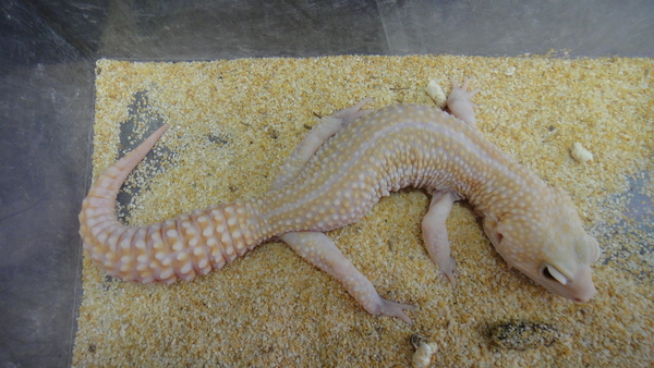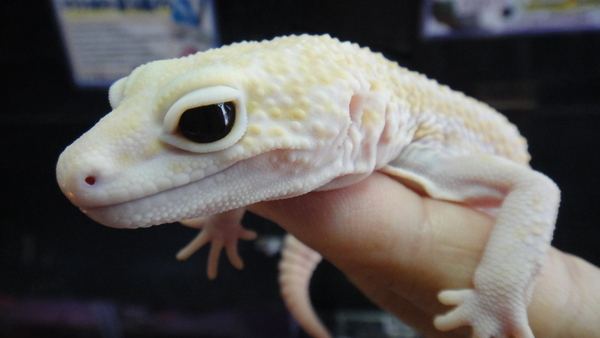 ヒョウモントカゲモドキ アルビノスーパーマックスノー 下段の画像です。2つの画像は同一個体です。