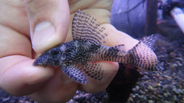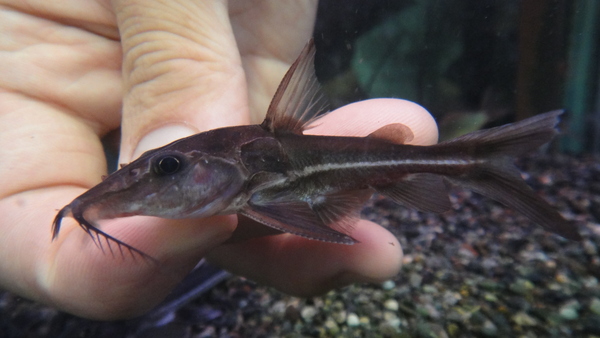 ロングノーズオキシドラスのインボイスで来ましたが、ロングノーズオプソドラスですね。ヒゲは葉脈状になっていて細く突き出した口が特徴的です!他のオプソドラスに混じって輸入される程度でまとまった入荷がほとんどない珍しいナマズですので、小、中型のドラスが好きな方は要チェックです!