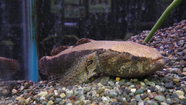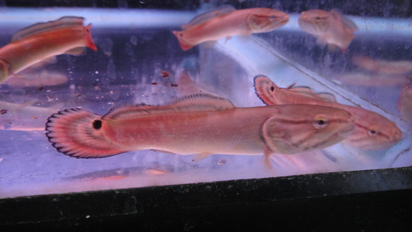 エクアドル産の激レアなカワアナゴの1種です。滅多に入荷しない魚ですが全然人気もないんですよね・・・。なのでせっかく仕入れてもおそらく日本中にも数名しかいないであろうこのての魚が好きな変態マニアの方にしか喜んでもらえないような魚です。個人的にはすごく好きなんですけどね・・・。タライロンみたいでかっこいいと思うんだけどなぁ。中段右の画像です。