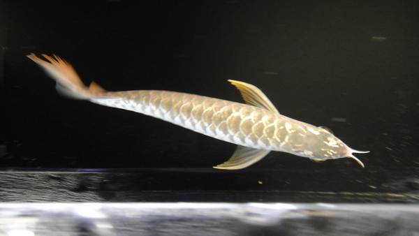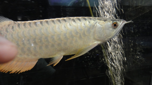 超極上の過背金が入荷です!!すごい発色で25cmにしてすでに6列目まで金が巻いちゃってます!グリグリで完璧に仕上がってますね!!フルゴールデンヘッドではありませんが頭に入る筋はしっかり光っています!もちろん欠点もありませんよ!目垂れ無し!エラ捲れ無し!アゴズレ無し!完品です!!顔付きも尖り気味でかっこいいし、体格もがっしりしています!餌食いも良くワームやコオロギ、小赤、なんでもバクバク食べてます!ハイレベルな過背金ほど神経質な個体が多かったりしますが、この個体からは神経質さなんて微塵も感じられません!!こんなに素晴らしい個体なのにこの値段は絶対に激安ですよ!うまく写真が撮れなくて画像ではあまりキレイに見えないかもしれませんが、実物は画像よりも全然良いですよ!