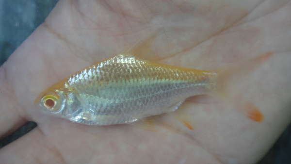 まだ小さいですがしっかり餌を与えればすぐに大きくなります!普通のレッドフィンよりも派手でゴージャスです!!アロワナの混泳相手にもオススメです!