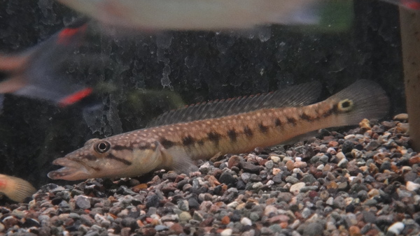 レアなハゼ型パイクシクリッド入荷です!底の方をひょこひょこ泳ぐ姿がかわいいですね!ギャラクシーの名前の通り全身に入る細かいホワイトスポットがとても美しいです!今回は小さめでお買い得な個体が1匹だけですが入荷しました!大特価ですのでマニアの方はお見逃しなく!!左上の画像です。