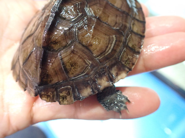 上段の画像の左側の黒っぽいのが甲欠けの個体です。甲欠けの具合は中段左の画像でご確認ください。
