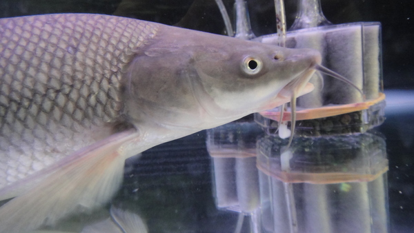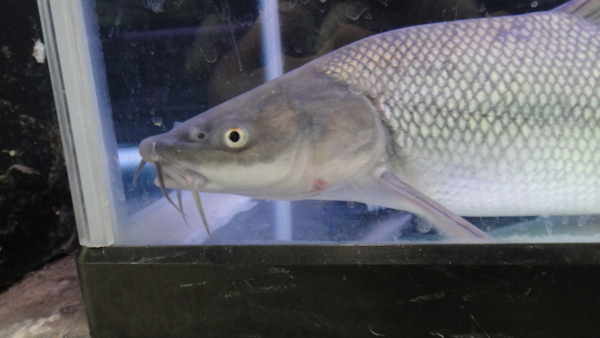 Coreius heterodonのインボイスで輸入された当店初入荷の中国産超激レア鯉です!鋭く尖った顔つきとスマートな体型がすごくかっこいいです!しかもサイズがでかくてすごい迫力です!!ヘテロドン種は1対2本のヒゲがある魚ですが、今回入荷した個体は2対4本のヒゲがありますので、こいつはヘテロドン種ではないですね。でも普通のヘテロドンでさえ国内には数えるほどしか輸入されていないはすですので、今回入荷したタイプは国内初入荷かもしれません!!詳細については輸入元の方でもいろいろ調査中らしいのですが、この魚は野生では2m近くにまで成長するらしいです!信憑性のほどは不明ですし、水槽内でどれくらいまで育つのかもわかりませんが、こういう謎の魚はマニア心をくすぐりますね!?見た目のインパクトのある魚でまだ見たことのなかったこんな魚が入荷するとワクワクしますね!アジア産コイ科魚類のスーパーマニアの方いかがですか?今回国内にもごく少数しか輸入されていない超希少な魚ですし、こんなマイナーな魚もう2度と輸入されないかもしれませんよ!?このサイズで輸入された個体ですので、ヒレ裂けやスレなど多少のキズはご了承下さい。致命的なキズや欠点はありませんのでしばらくで治っちゃうと思いますけどね。上段、中段の画像です。4つの画像は同一個体です。