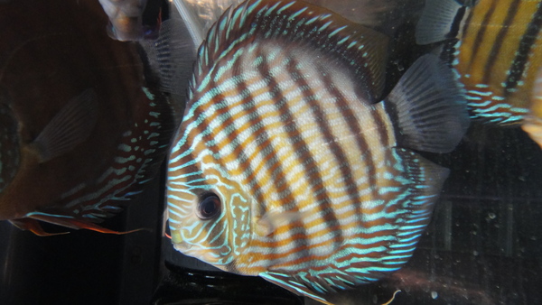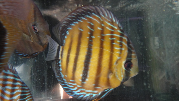 たぶんブラウンディスカスだと思います。間違ってたらごめんなさい。赤味の強いボディでこれもなかなかキレイです!3匹います。