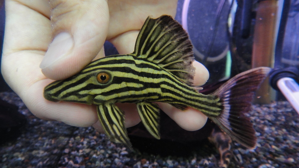 これ個人的に大好きなんです!安いですが侮れないとってもキレイなプレコです!はっきりくっきりの縞模様はまさにタイガー!頭部には細かく入り組んだ極細のラインが入り、実はとっても派手なプレコなんですよ!こんなにキレイで値段も安いのになぜか人気はイマイチというかわいそうなプレコなんです・・・。