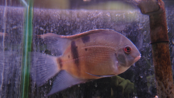 ドラードは現地ブリードの小さい個体の入荷は多いですが、こういうワイルドの大き目の個体の入荷は実はとっても珍しいんです!がっしりしていて迫力もあります!入荷したばかりなので少しヒレがバサバサしてるところはありますがすぐに治る程度です。餌食いも良く状態は良好です!