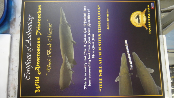 貴重な旧タイプマンファリのF1個体が再入荷!今回は前回入荷したのと同じロットの個体がさらに大きくなって入荷しました!すでに20cm位あるので小赤も食べられるグッドサイズです!とりあえずこのロットの個体は今回の入荷で最後だそうです。また来年以降にうまいことブリードに成功したら入荷するかもしれませんが、しばらくの間はもう来ないと輸入元に言われていますので、前回買いそびれてしまった方はお急ぎください!鱗乱れ無し、鼻うちも無し、ヒレの条の歪みも無しの完品個体です!一般に流通するマンファリの中からこれだけのクオリティの個体を探すことはほぼ不可能です!それにもし見つかったとしても、旧タイプは太く幅の広い口が特徴ですから大きく育った時に明らかな違いが出ると思いますよ!ブリードの親に使われた個体は85cmもあるモンスターマンファリらしいので、今回入荷した個体たちも将来がすごく楽しみです!入荷は少数のみです!今回入荷した旧タイプマンファリには親魚の写真がプリントされた証明書が付属します。