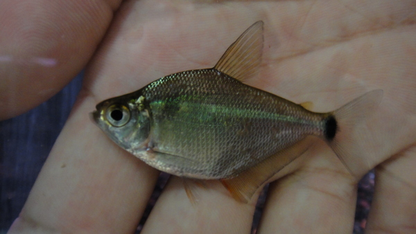 ペルー産の珍しいカラシンです。ビッグアイカラシンのようなカラーリングでシルバーダラーの頭を小さくしたような体型です。なかなか面白い魚ですね。