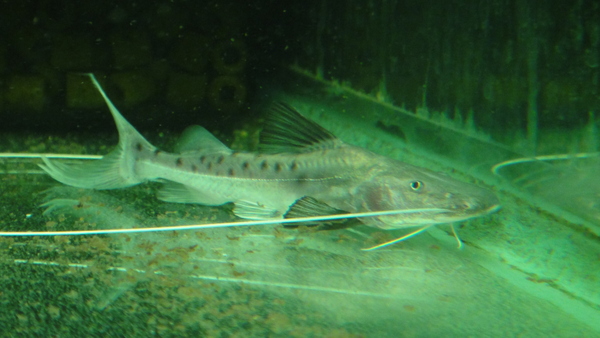 ロングノーズデンキナマズspのインボイスで入荷したParadoxglanis tarvusという超激レアデンキナマズです!普通のデンナマとは属レベルで違います!!こいつすごい胴長ですよ!ロングノーズデンキナマズspよりロングボディデンキナマズの名前の方が合ってると思います。それ位長くてドジョウみたいな体型です。最大でも18cm位にしかならない小型種らしいです。あと背ビレの形にも特徴があって、低くて長い変わった形の背ビレです。入荷は1匹のみです!こういうの好きな方はお見逃しなく!!中段右の画像です。