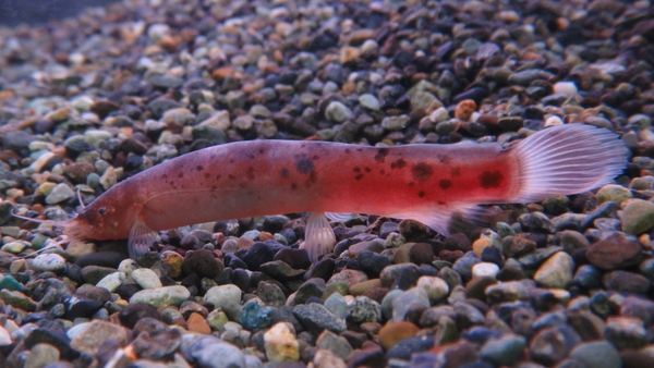 久しぶりに入荷です!遊離軟条が16対32本の種類で純淡水で終生飼育できます。個人的に大好きな魚なので見つけるといつも仕入れちゃいます!状態良好でエサ食いも問題ありません。今は赤虫を与えておりますが、ミニキャットなどの沈下性の粒の小さい人工飼料にも簡単に餌付けることができます。pHの低下や水質の急変にさえ気をつければ飼育はそれほど難しくありません。深海魚チックで魅力的な魚です!オススメ!
