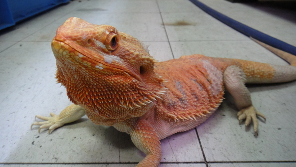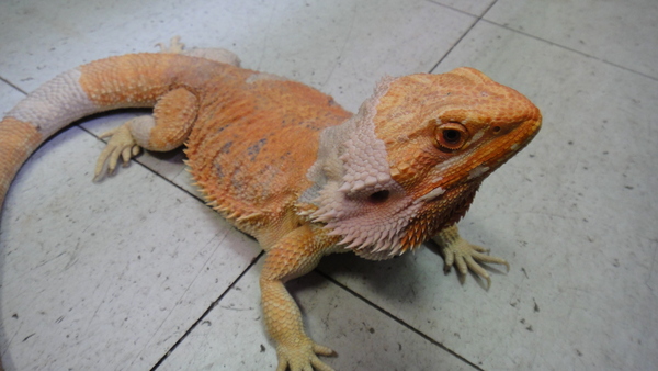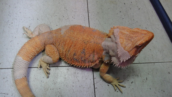 極上個体入荷!尾切れ、爪欠けの無い完品で、性格も大人しくハンドリングも問題ありません。しかも超でかいです!!全長で50cmを余裕で超えています!!よくアダルトで40~50cmなんて言われていますが、ほとんどの個体は45cm位までで実際に50cmを超えている個体はなかなかいません。横幅もあるのですごい迫力ですよ!この大きさの個体というだけでも価値があると思います。しかもこの個体はまだ全然若いんです!去年の9月にハッチした個体なのでまだ生後1年もたっていません!大きい分年を歳をとってるんじゃないかという心配は無用です!!今は脱皮前なのでところどころ皮膚が白く浮いていますが、それでも蛍光オレンジが鮮やかに発色していますので、脱皮が済んだらかなりキレイになるはずです。画像よりも実物の方が全然色が濃くて何倍もキレイです!!画像では色が薄く写ってしまい、この鮮やかなオレンジが表せないのが残念です。ぜひ実物を見に来てください!メス個体なので多頭飼育で持てあますこともないですし、フルアダルトのメスなので繁殖を狙ってみるのもいいですね!かなり大きくて大人しい個体なので抱きトカゲとしてもオススメです!