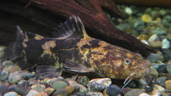 なかなか見かけないビッグサイズで入荷です!インドネシア産のマレーゴビーです。茶色っぽいのとか、黄色っぽいのとか、けっこう産地によるバリエーションがある魚ですが、今回のはちょっと灰色がかった体色のタイプです。こういう大型になるカワアナゴ系のハゼ大好きなんです!ぜひデカくしてあげて下さい!