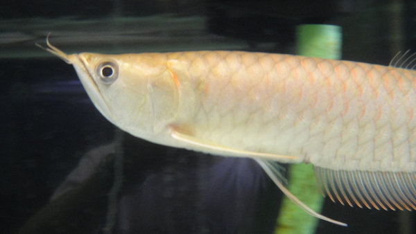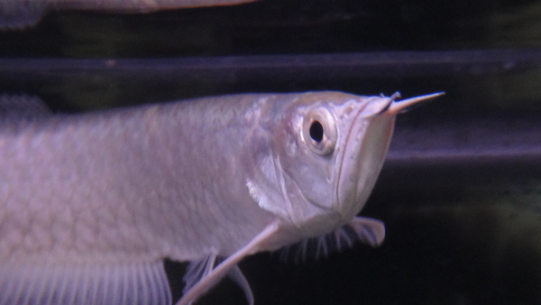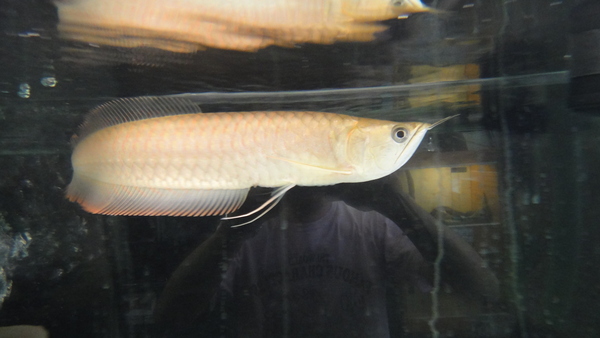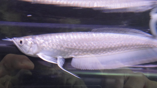 これも順調に育っています!入荷時は12~13cm位だったのに今では30cmを超えるサイズにまで成長しました。シルバーといえば目垂れやアゴズレなどが気になるところですが、この個体はとても優秀です!長期間飼い込んでいますが今のところ目も垂れてこないし、アゴもずれていません!完品のすごくキレイな個体です!頭もスプーンヘッド気味ですごくかっこいいです!背面のみ黒のベアタンク水槽で飼育していますが、白水槽で飼育すればアルビノシルバーのようなキレイなクリームホワイトになりますよ!