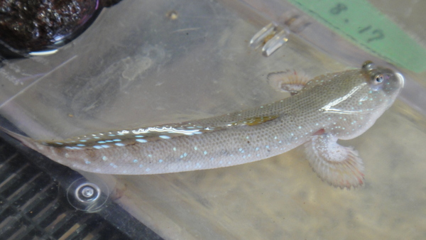 名前の通り鮮やかなメタリックブルーのスポットが入ったインド産のトビハゼの仲間です。マッドスキッパーみたいな感じで汽水で飼育してもらえればOKです。キレイでとっても可愛いですよ!