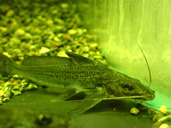 これは前回入荷したやつの残りです。ショートノーズのが来たからこっちはロングノーズと表記しておきます。入荷した時痩せてたからトリートメントしていた個体ですが、今は状態も問題ありません。最初にご購入いただいたマニアのお客さんとも少しお話しましたが、松坂さんが輸入してた時以来でかなり久しぶりに見たナマズだとおっしゃっていまして、自分も15年前とかかな?松坂さんから仕入れて以来見ていませんでした。当時はインディゴブルーピニランプスとかハイフィンブルーバックキャットとかホワイトマルチンスとかバルバードとかが普通にごちゃ混ぜで輸入されることもあったりで、松坂さんもけっこう適当だったから分けて売る時もあればごちゃ混ぜのまま売る時っもあって、宝くじというか宝探しというか、そういうのをわくわくしながら仕入れしてたのがちょっと懐かしいです。ちなみにこの魚はマリン企画の「世界のナマズ」に載ってます。世界のナマズにはサイズが50~60cmと書いてありますが、たぶんそんなに大きくならないと思います。ハイフィンブルーバックキャットとかと同じでなっても25cmとかじゃないかな?わかんないけど・・・。ロングノーズも在庫は最後の1匹です!次回の入荷予定はありませんのでマニアの方はお見逃しなく!左下の画像です。