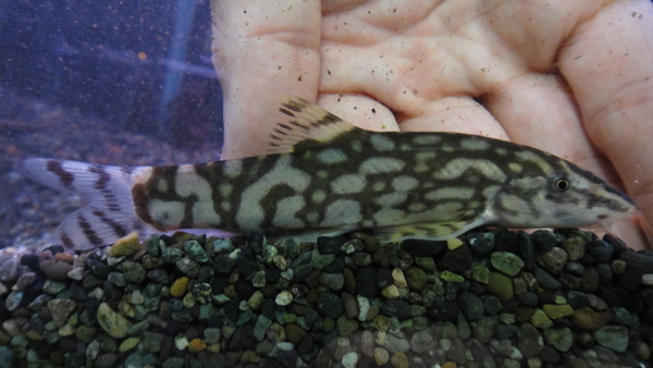 見た目はアンジェリカボーシャの模様をさらに細かくしたような感じのドジョウですが、こいつでかくなるらしいです!輸入元の話ではとても珍しいドジョウで初入荷かもしれないとのことです。さらに現地からの情報では最大で36cmにもなるそうです!水槽の中でどこまで大きくできるかは不明ですが、飼育意欲をそそりますね!しかも値段もそんなに高くなし、これはオススメですよ!入荷は少数のみですのでお早目に!!
