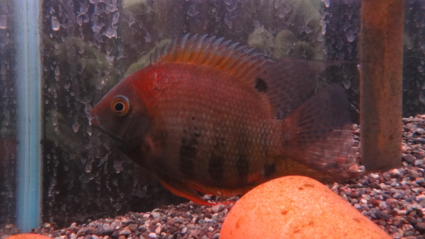 ガイアナ産のキレイなノッタータスが入荷です!淡いメタリックグリーンに濃い赤紫のスポットが入りとってもキレイです!成魚ではさらに派手になり、個体によってはヒレがオレンジになり、体色の緑もより鮮やかになります!右上の画像です。