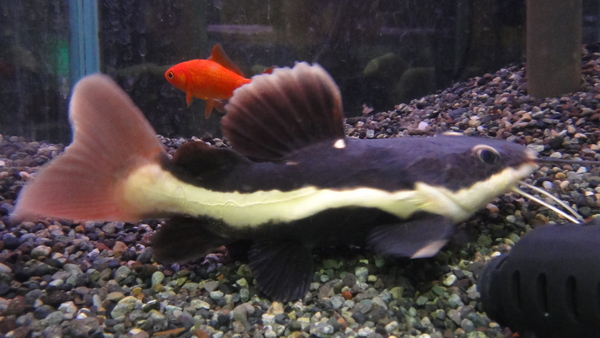 久々の入荷です!最近全然見かけませんでしたが、1匹だけ入荷しました!レッドテールキャットはすごく良い魚だと思いますが、大きくなりすぎて飼いきれなくなったり、他の混泳魚を食べられてしまったりで持ち込まれることが多いので、注文分以外は基本的に仕入れないことにしていますが、ショートボディならいいですね!ノーマルに比べればサイズも大きくなりませんし(それでもけっこうな大きさにはなりますけど・・・。)、価格もノーマルほど安くないしとても珍しい魚だから買ってくれた方もみんな大切に可愛がってくれますしね。ころころしていてとても可愛いナマズです!滅多に入荷しませんのでお探しだったという方はいかがですか?