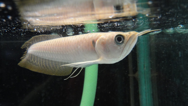 プラチナブラックに続き、今度はシルバーの色変わりのすごいのが来ましたよ!透明鱗でさらにちょっと黄変個体っぽい感じの激レア個体です!しかもこの個体はペルー産のワイルドですからね!!アルビノのようなブリードではありませんので本当に貴重ですよ!サイズもメダカを余裕で食べられる安心サイズだし、体型もスプーンヘッドな感じですごくかっこいい顔をした極上個体です!この黄変チックなタイプのスケルトンシルバーは成長するとアルビノシルバーに近い(もちろんアルビノほど鮮明な体色にはなりませんが、)クリーム色の体色に成長しますので大きくなってもすごくキレイになりますよ!珍魚マニア、色彩変異マニアの方いかがですか?あと、アルビノの赤い目が苦手な方にもオススメです!画像だと白っぽく見えますが、実物はもっと黄色っぽいです。