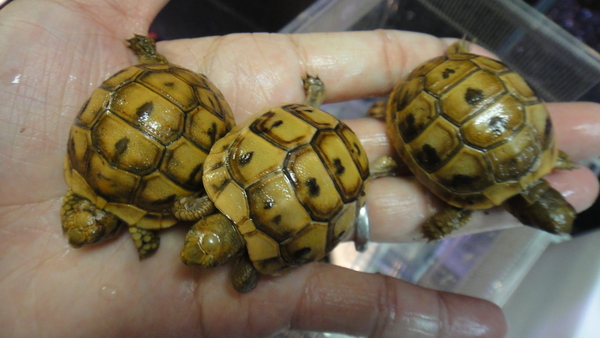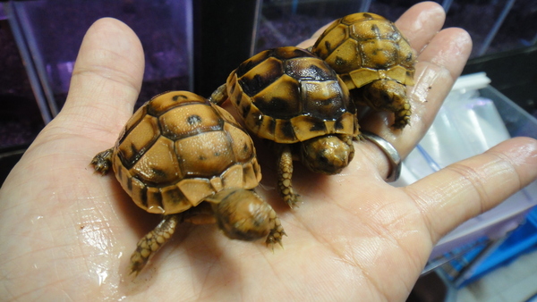 小さくてすごくかわいいギリシャのベビーが入荷です!小さいですがしっかりしたベビーで餌食いもすごくいいですよ!みんなで野菜をもりもり食べています!オレンジの強い個体や黄色っぽい個体、黒い模様の多い個体などいろいろ選んできましたのでお好みでどうぞ!