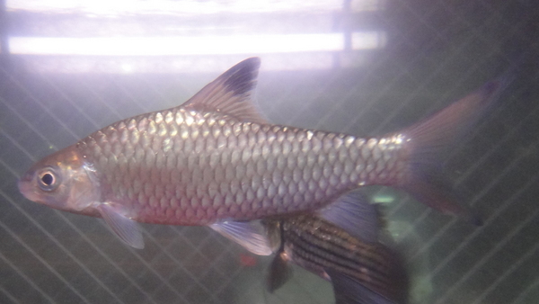 きめ細かい鱗でコクレンとかハクレンを細長く伸ばしたような雰囲気ですが、口は下向きでラベオのそれといった感じです。最大サイズなど詳細は不明ですが、性格は大人しいようでほかの魚と混泳させていますが全然大丈夫です!
