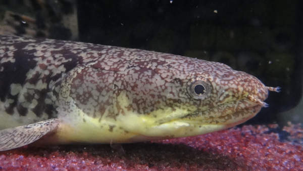 こっちは同時に輸入されたメス個体です!オスメス関係なくとっても貴重なナマズですから今回ペアが揃ったことが奇跡です!こちらの方が一回り大きくて、体高もあり迫力あります!飼育は難しくなく、普通にメダカや小赤などの小魚をよく食べます!オスメスともに着状態も良く絶好調です!マニアの方は要チェックですよ!!
