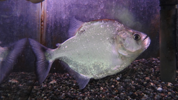 通常¥48000で販売していた個体ですが、背中に少しキズ痕があり、その部分だけ鱗の感じに違和感があります。キズそのものは完治しています。あと臀ビレの軟条に歪みがありますが、ヒレの形はキレイです。状態は良好で餌食いも抜群です。ラインノーズは今ではほとんど入荷の無い希少なピラニアで値段も数年前に比べてだいぶ高くなりました。今回ご紹介の個体は少々気になるところはありますが、このサイズの個体ではありえない位に激安です!!「ちょっとのことくらいは全然気にしないよ!」というお客様には超オススメです!!とりあえず画像でご確認下さい!