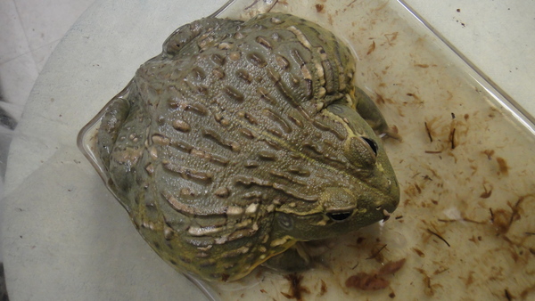 でかい!!メジャーをあてると13cm位ですが、幅も同じ位かそれ以上にありますので、実測のサイズ以上に大きく感じます!でもまだまだこんなもんじゃないですよ!しっかり飼い込んでさらなる大型化を狙いましょう!!爬虫類はダメですが、両生類は熱帯魚同様に通販OKですので遠方のお客様もぜひご検討下さい!