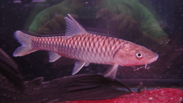 日本のハスとかに近い系統の淡水魚で、頭が大きくて、口も大きいです。サイズ以上に存在感があって迫力があります。色は地味だけどかっこいい魚です。高い魚ではありませんが入荷は稀ですのでバルブ系とかが好きな方はお早目に!